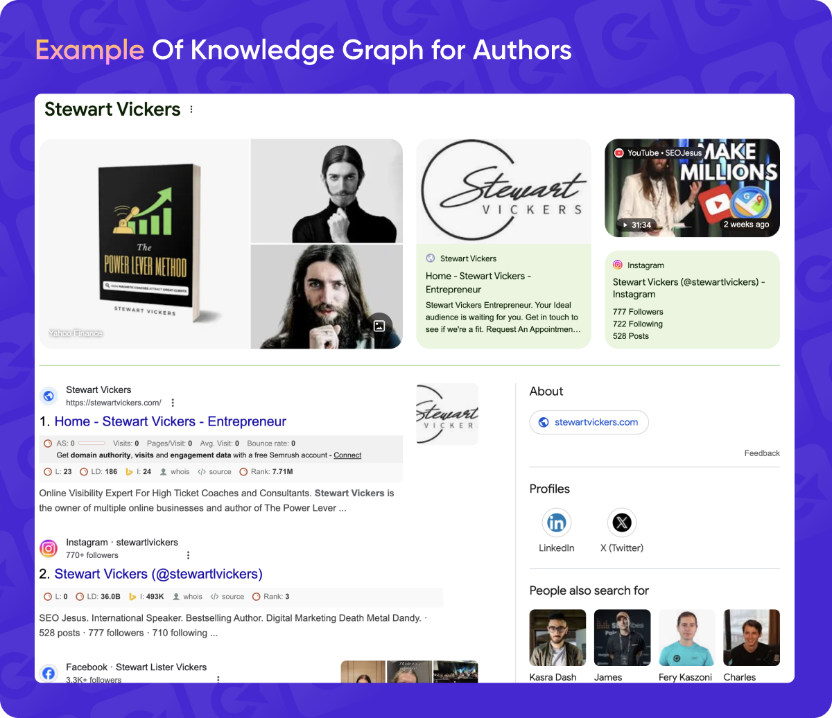 It’s an impressive example because, as an SEO specialist, he earned a professional knowledge panel in SEO.