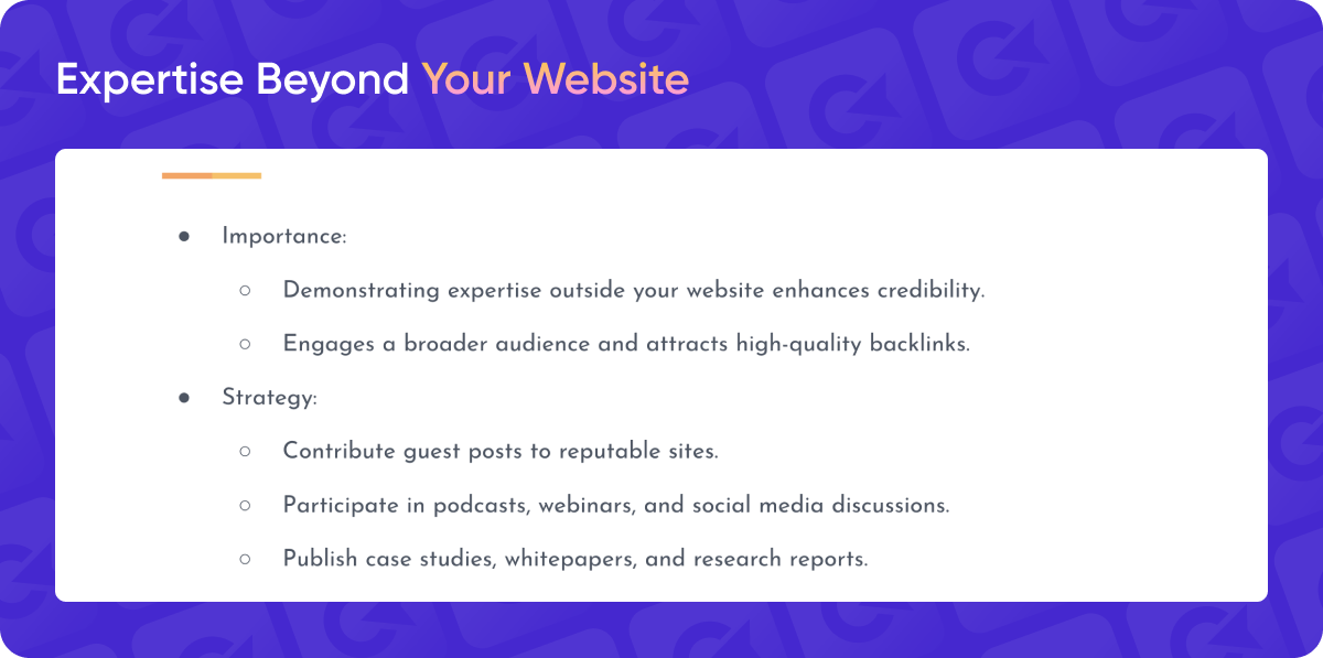 The main goal isn’t just to earn backlinks but to build your brand by reaching a broader audience and reinforcing your authority on the topic.