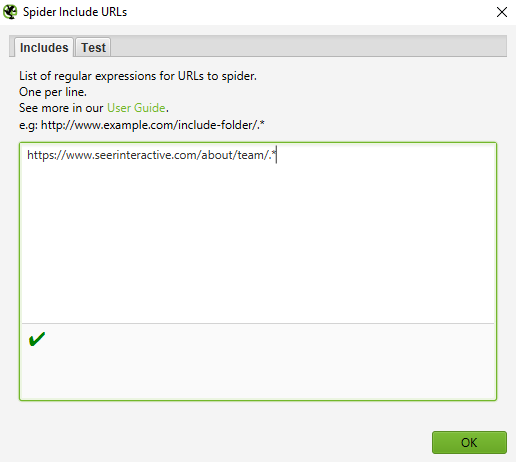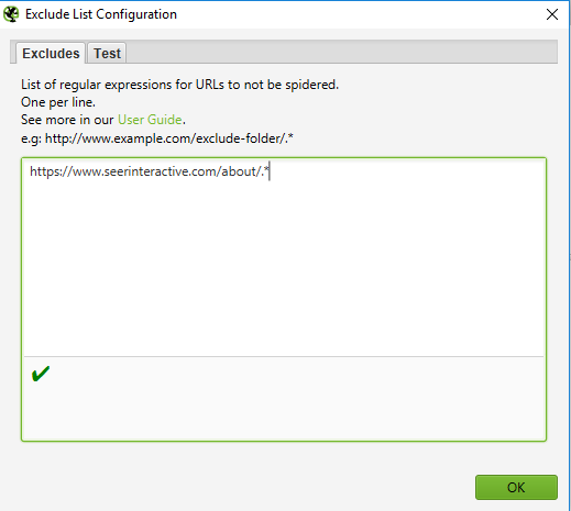 Вы можете ввести до 10 фрагментов за одно сканирование. Дальше нажмите ОК и продолжите сканирование сайта или списка страниц.