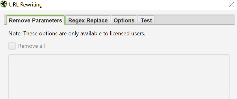 Для удаления параметров с отображения в проверенных URLах, перейдите в Configuration > URL Rewriting. Затем во вкладке «Remove Parameters» нажмите «Add», чтобы добавить параметры, которые вы хотите удалить из URLов и нажмите OK. Перезапустите проверку с этими настройками для перезаписи.