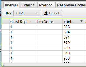 Если вы не имеет доступа в Google Analytics или Search Console, вы можете экспортировать список внутренних URLов как файл CSV, используя фильтр «HTML» во вкладке «Internal».