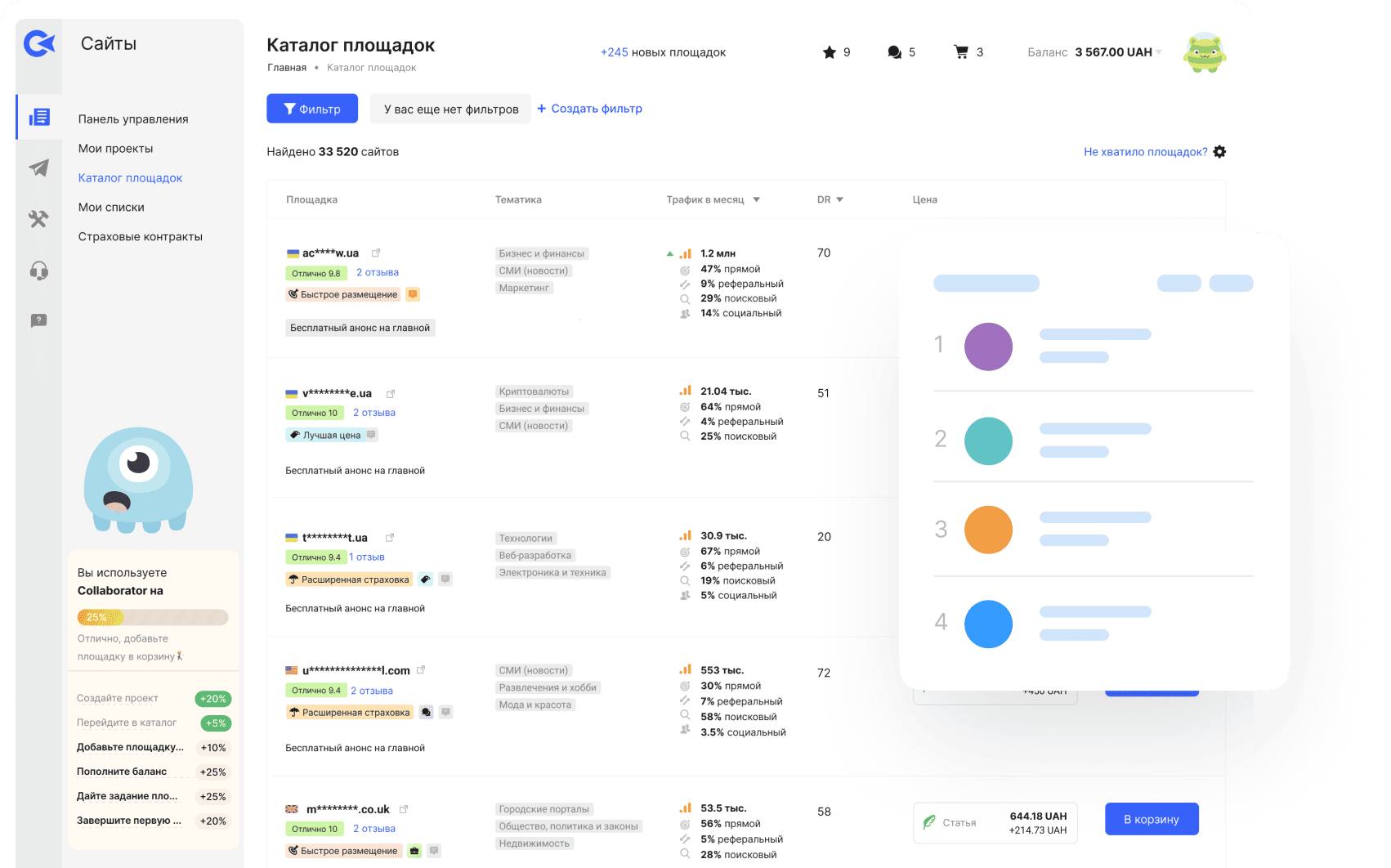 Получите доступ к каталогу авторитетных площадок с целевой аудиторией